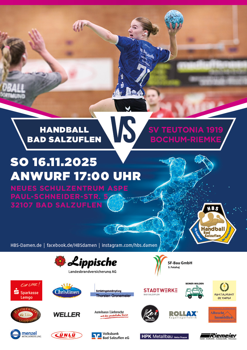 Handball Bad Salzuflen trifft auf SV Teutonia 1919 Bochum-Riemke Anwurf: 17:00 Uhr, Halle Aspe