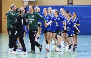 Axel Carls nahm die Auszeit und Julia Feldmann und Viola Pallas zogen als „Indianer“ offensiv aus dem Deckungsverband. Es zahlte sich aus denn Julia und auch Viola „stibitzten“ den Ball und trafen trotz zwischenzeitlicher Unterzahl (Kristina Meier kassierte in der 57. Spielminute die 3. Zeitstrafe) zum Ausgleich. 23:23 (58.) Jetzt lagen die Nerven blank. Kein Team durfte sich jetzt noch einen Fehler leisten. Der Tus erhöhte auf 23:24. Dreißig Sekunden waren noch zu spielen und nicht einen Zuschauer in der Halle hielt es mehr auf seinem Sitz. Nervenstärke bewies in dieser Situation Julia Feldmann die den Ball zum 24:24 Ausgleich im generischen Tor versenkte und die Halle zum explodieren brachte.