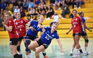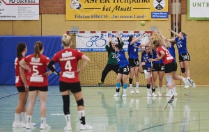 Die Deckung bekam keinen Zugriff. Laura Sandmann auf verlorenem Posten versuchte ihr möglichstes, doch der Gegner, allen voran Denise Fischer traf aus alles Lagen. Axel Carls beorderte Celine Höhnert ins Tor und verstärkte die Deckungsmitte mit Kristina Meier. Celine hielt gleich einen Strafwurf und Larissa Petersen tankte sich ein ums andere Mal durch. So konnten wir uns bis zur 29. Spielminute sogar eine 15:14 Führung erspielen, ehe Julia Schäfer zum 15:15 ausglich. Viola Pallas hatte jedoch etwas gegen die Punkteteilung zum Pausentee und erhöhte Sekundenbruchteile vor dem Pausenpfiff auf 16:15.